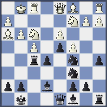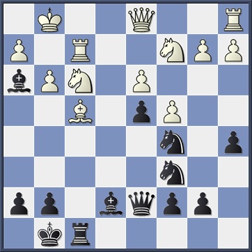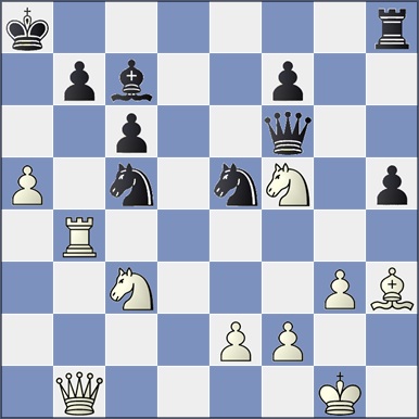 Elmira opened with the Réti system to reach this position which resembles a Benoni in reverse. She has just played 14.Bh3 to attack the rook.