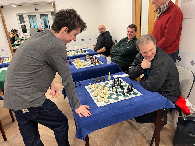 It was a pleasure to welcome back to the club Oxford University’s genial International Master Tom O’Gorman. Since his last visit two years ago Tom has clocked up several tournament successes, including an outstanding performance for Ireland in the last chess Olympiad.