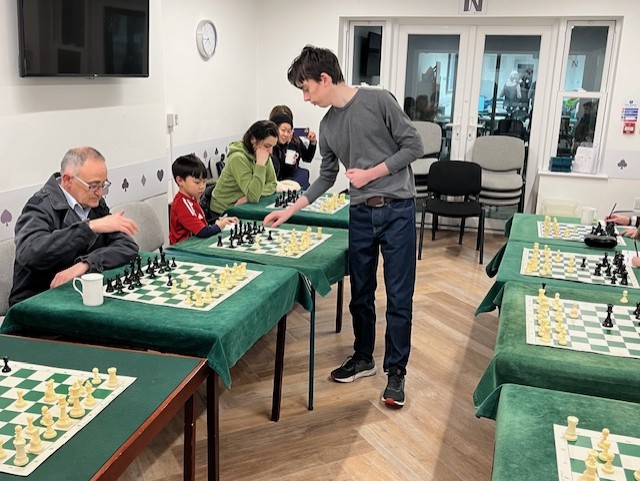 On this occasion he took on 14 players, including most of our first team, and scored an impressive +12 =1 -1.