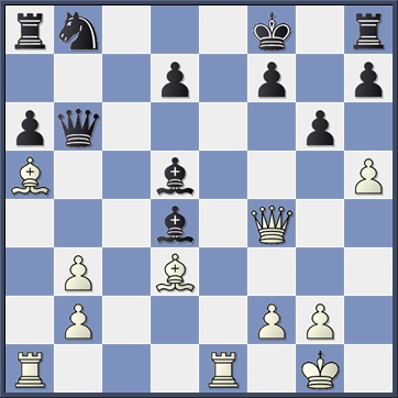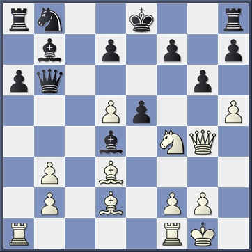 Tom has nursed a small edge from the opening and can now collect a pawn by 26.Ra1 Qe6 (26…Qc4 27.Rd6 Be5 28.Rg6+! fxg6 29.Rxa7+ wins) 27.Qxe6 Rxe6 28.Rxa7.